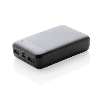 Powerbank 10.000 mAh dont le boîtier est fabriqué en plastique ABS recyclé certifié RCS. RCS (Recycled Claim Standard) est une norme permettant de vérifier le contenu recyclé d'un produit tout au long de la chaîne d'approvisionnement. Lorsqu'il est entièrement chargé, le powerbank vous fournit suffisamment d'énergie pour recharger votre téléphone portable jusqu'à cinq fois. Le powerbank contient une batterie au lithium-polymère haute densité de qualité A de 10 000 mAh. Les indicateurs d'alimentation indiquent le niveau d'énergie restant pour que vous sachiez toujours quand recharger. Entrée Micro USB 5V/2A ; Entrée Type-C 5V/2A ; Sortie USB 5V/2A ; Article et accessoires sans PVC. Comprend un câble de chargement en TPE recyclé sans PVC