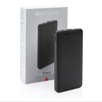 - Powerbank 10.000 mAh avec finition PU et couture sur les bords. La batterie permet de charger votre téléphone jusqu'à quatre fois. Entrée Type C: 5V/2A. Entrée micro-USB 5V/2A. Sortie USB 5V/2.4A. Câble micro USB en TPE inclus