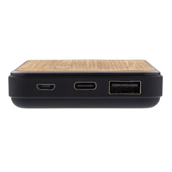 Powerbank 5000 mAh en bambou naturel et ABS avec finition gomme