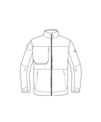 Broderie, côté gauche du torse, format maxi 8x8mm Broderie, bras droit en haut, format maxi 8x8mm Broderie, arrière article, format maxi 20x10mm Broderie, arrière article en bas, format maxi 20x7mm Impression du logo, côté gauche du torse, format maxi 10x10mm Impression du logo, gauche haut article, format maxi 10x2mm Impression du logo, droite haut article, format maxi 10x2mm Impression du logo, bras droit en haut, format maxi 10x10mm Impression du logo, arrière article, format maxi 20x12mm Impression du logo, arrière article en bas, format maxi 20x7mm