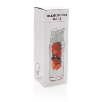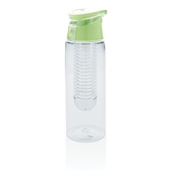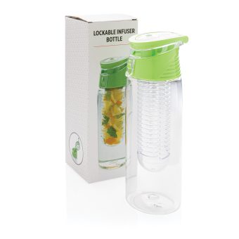 - Bouteille en Tritan 700ml avec compartiment à infusion. Aromatisez et vitaminez votre eau en ajoutant des fruits frais dans le compartiment à infusion. Le couvercle en ABS est verrouillable pour vous permettre d’emmener votre eau partout avec vous
