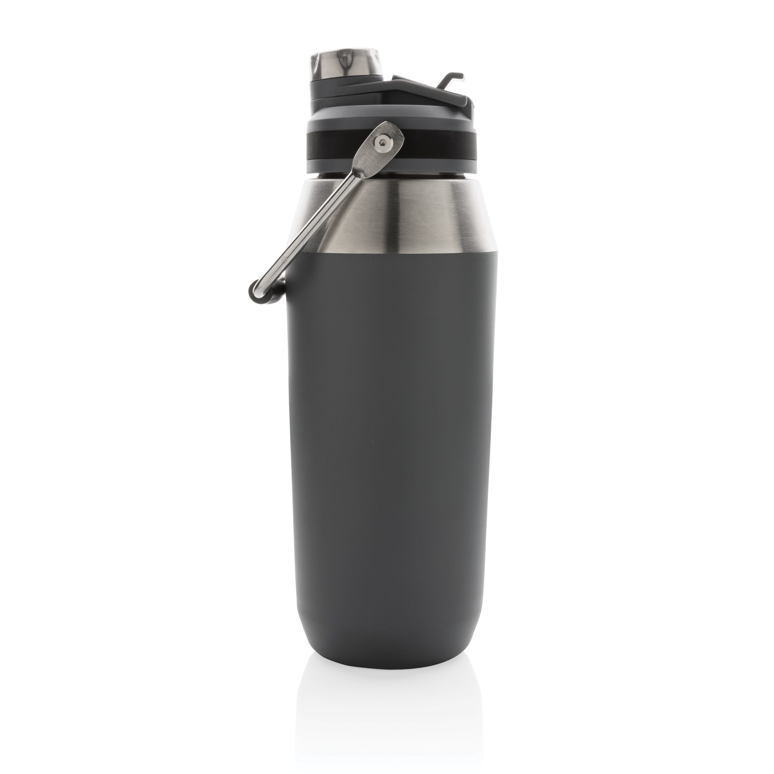 - Bouteille 1L en acier inoxydable double paroi et avec un couvercle à une double fonction : une paille à rabat et un bouchon à vis. Vous pouvez donc choisir la façon dont vous voulez boire ! La bouteille est dotée d'une poignée supérieure pour un transport facile. Garde les boissons chaudes pendant 5 heures ou froides pendant 15 heures. Finition noire par poudrage électrostatique faite pour durer