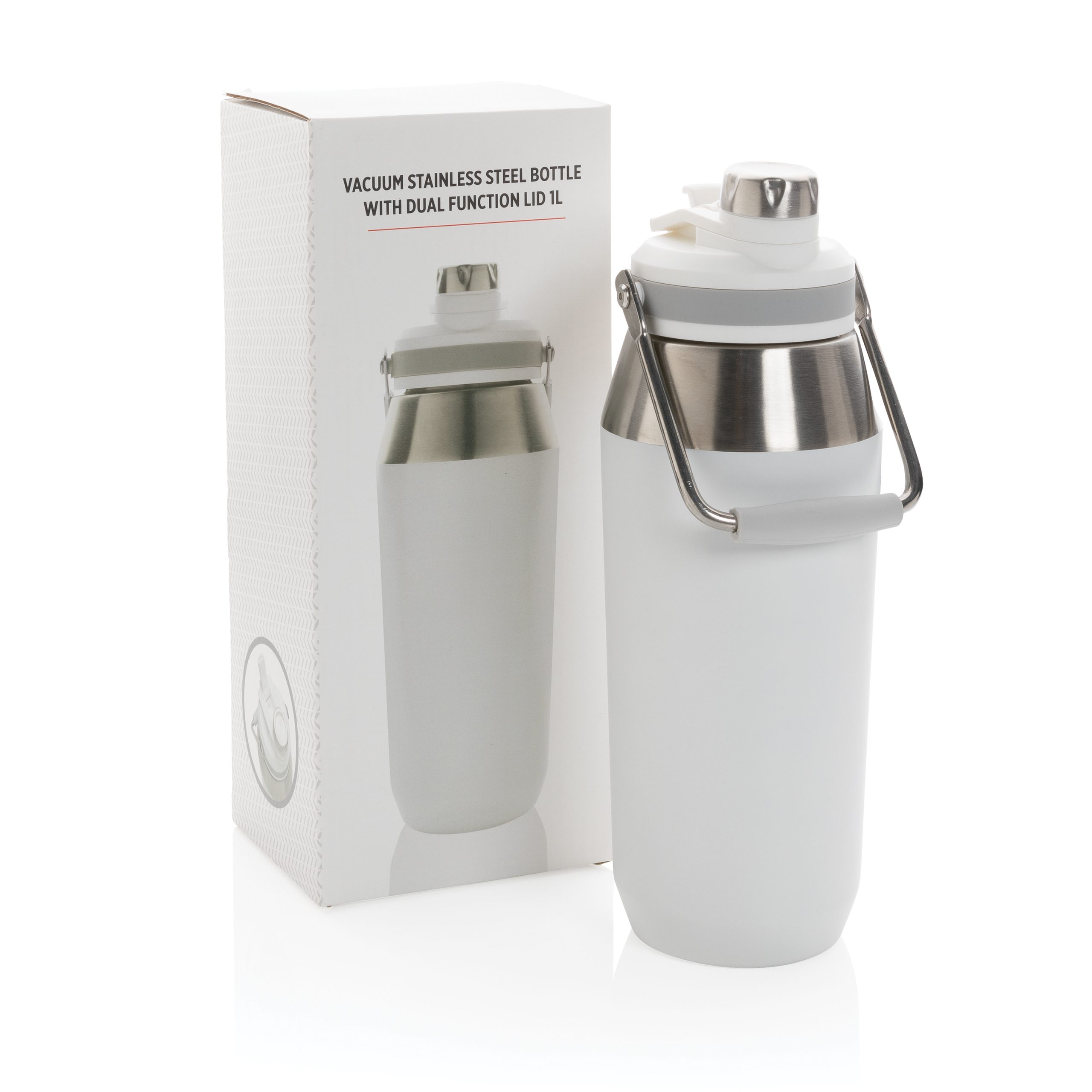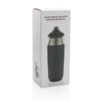 Bouteille 1L en acier inoxydable double paroi et avec un couvercle à une double fonction