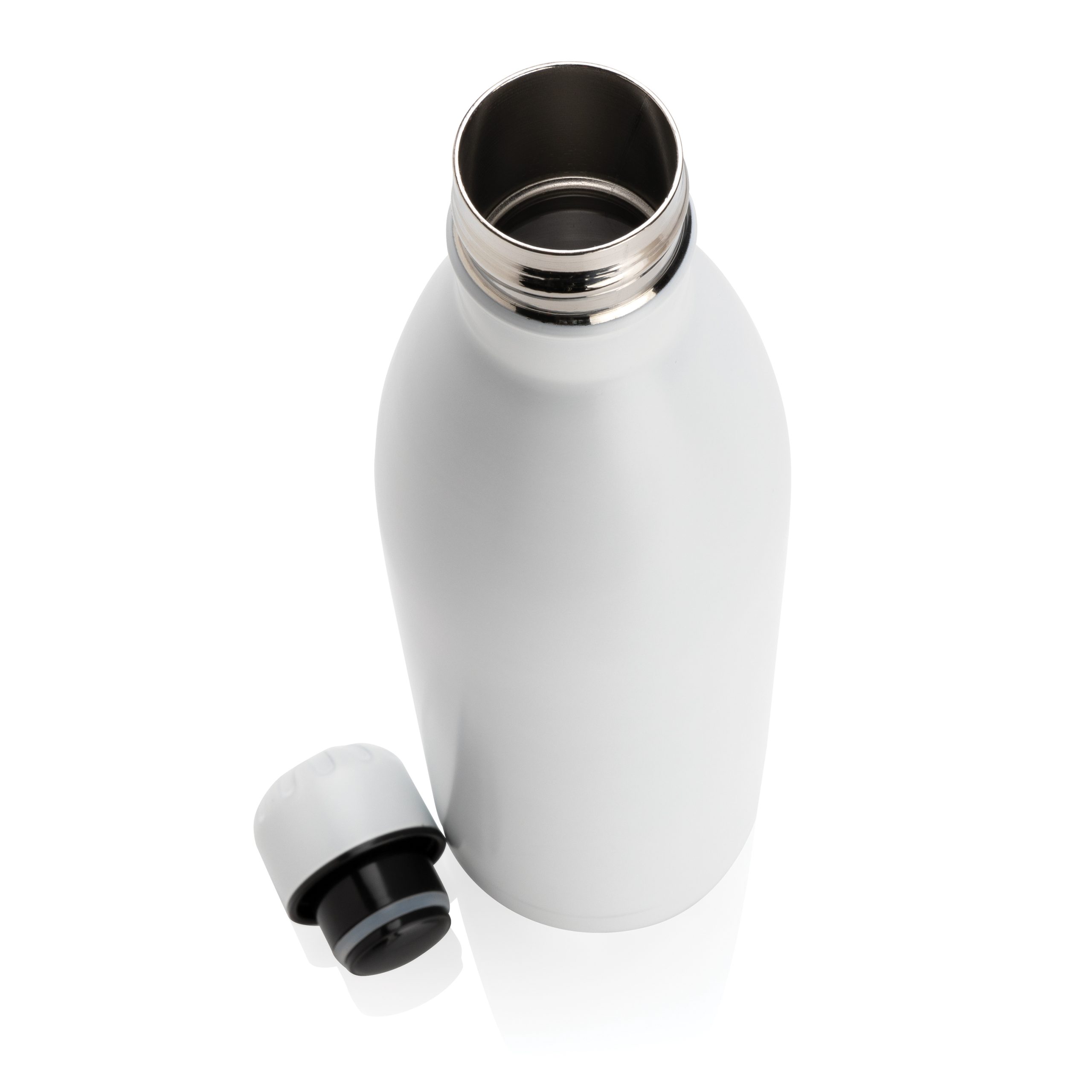 - Bouteille 1L en acier inoxydable double paroi de couleur unie. La bouteille garde les boissons froides au frais jusqu'à 15 heures et les boissons chaudes au chaud jusqu'à 5 heures. Avec une base qui s'adapte à la plupart des porte-gobelets, cette bouteille d'eau au look élégant vous permettra de vous hydrater lors de vos déplacements, où que vous soyez. Avec sa grande capacité, elle est idéale pour une excursion d'une journée