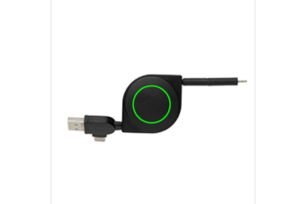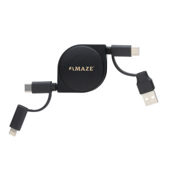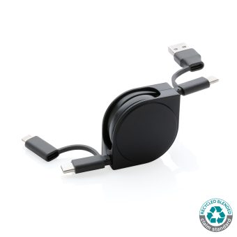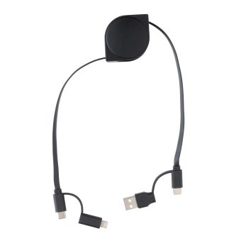 Câble rétractable 6 en 1 dont le boîtier est fabriqué en plastique ABS recyclé certifié RCS et le fil en TPE recyclé