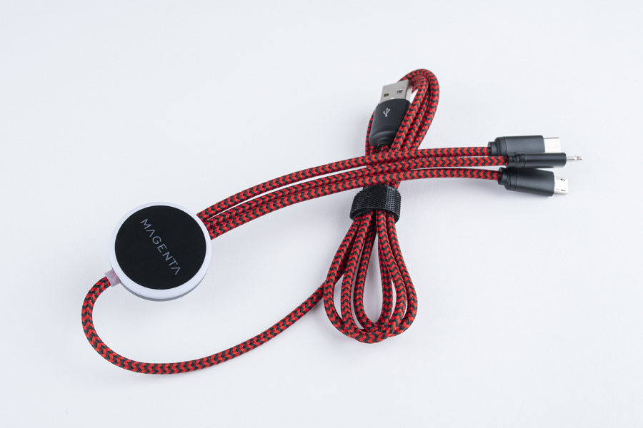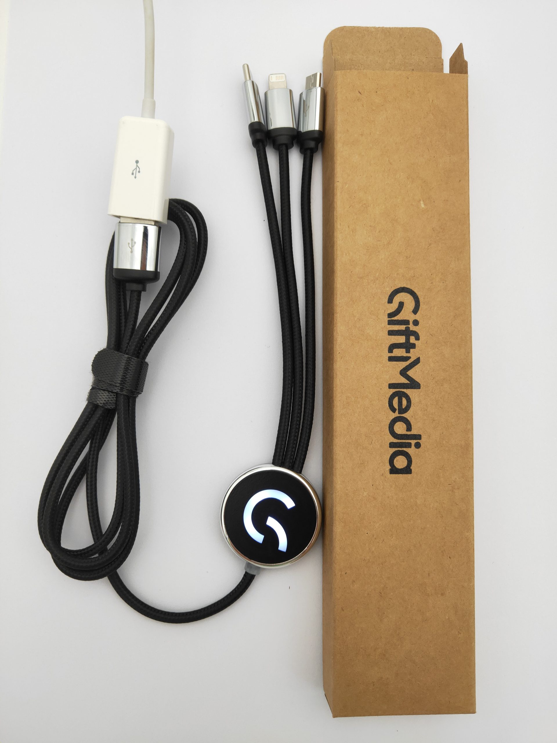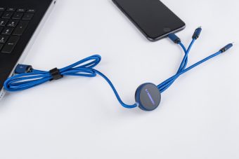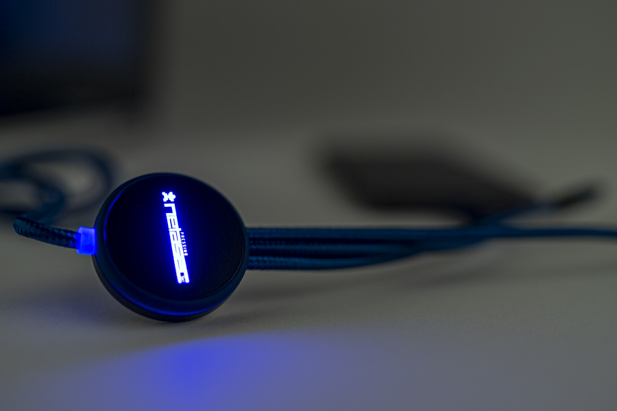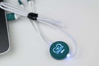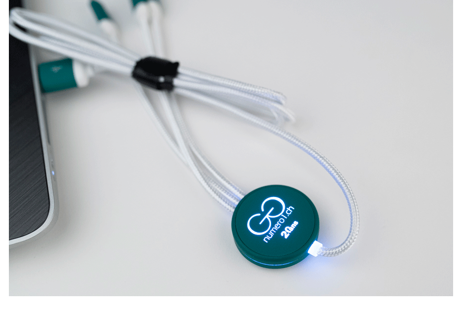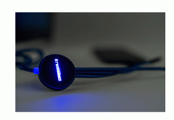 Câble de plus d’un mètre personnalisable, finition rubber avec logo lumineux pour type C, iPhone et Android