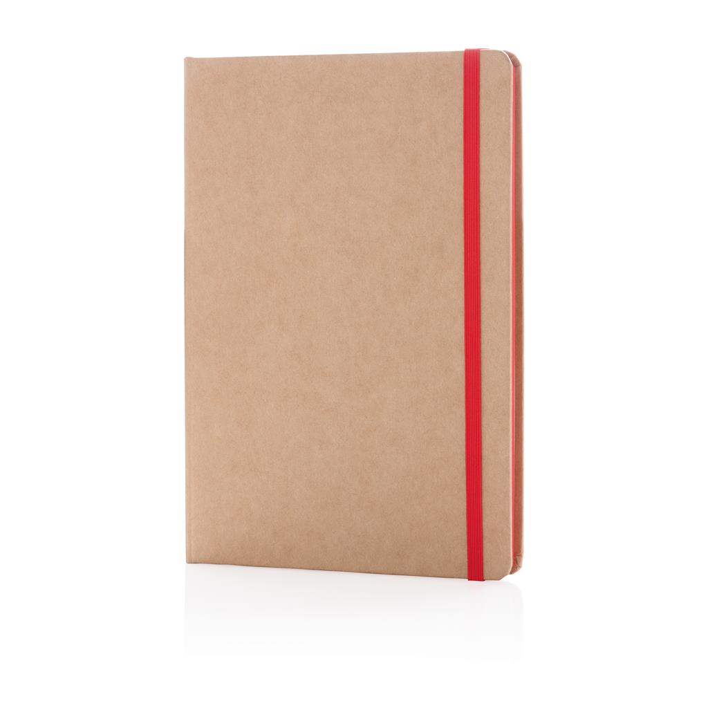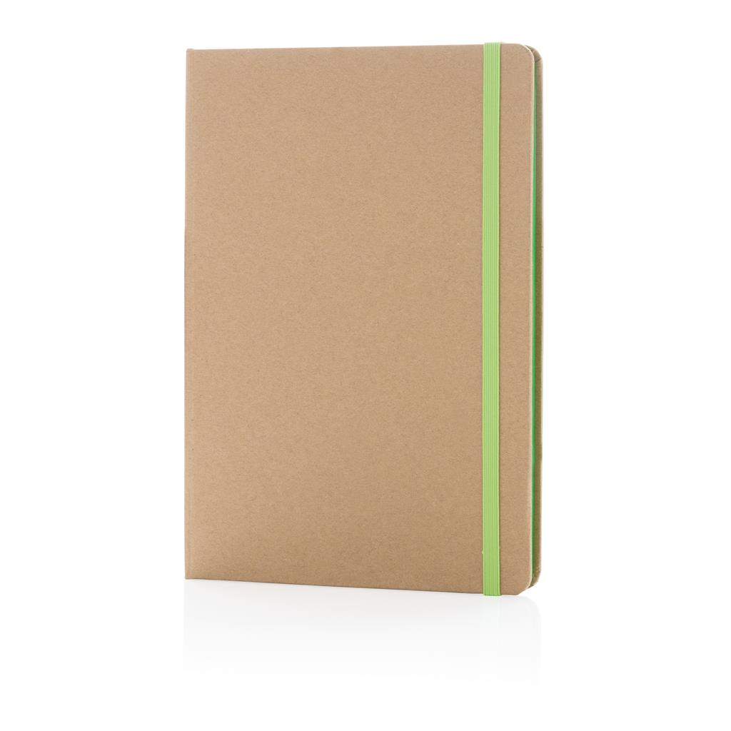 Carnet de notes à couverture en kraft recyclé, 72 feuilles/144 pages de 70g/m² (papier crème recyclé), élastique et marque-page.