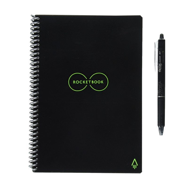- Un cahier connecté grâce à l’application Rocketbook. Conservez toutes vos notes dans votre cloud. Une fois le cahier rempli, effacez vos notes à l’aide du chiffon. Vous retrouverez vos pages blanches, prêtes à être utilisées à nouveau