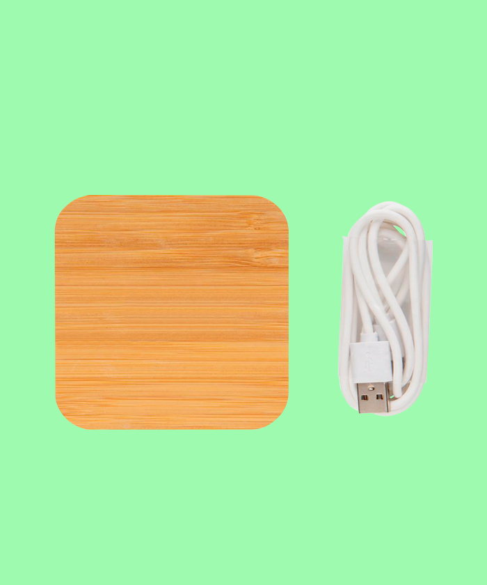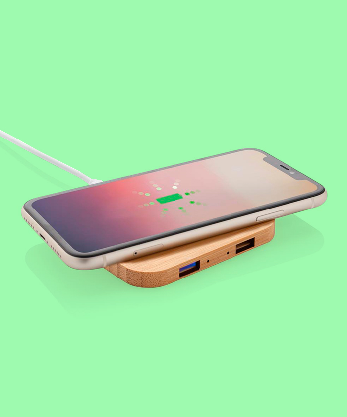 Chargeur sans fil en bambou avec double port USB
