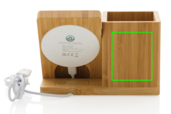 - Chargeur rapide sans fil 10W avec porte-stylo fabriqué en ABS recyclé certifié RCS (Recycled Claim Standard). Contenu recyclé total : 6% sur la base du poids total de l'article (base en bambou incluse). L'extérieur de l'organiseur est entièrement fabriqué à partir de bambou FSC 100. Câble de chargement de 120 cm de type C fabriqué à partir de TPE recyclé certifié RCS inclus. Emballé dans une boîte en kraft FSC mix. Entrée Type-C 5V/2A ; 9V/1.67A. Sortie sans fil 5V/1A;9V/1.1A (10W). Modèle déposé®.