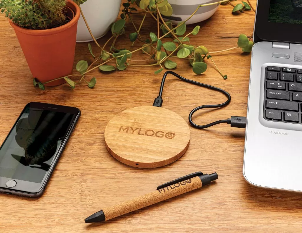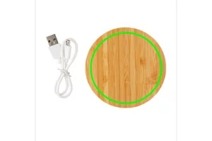 - Chargeur sans fil de 5W en bambou certifié FSC® 100%. Compatible avec tous les appareils compatibles QI comme Android dernière génération, Iphone 8 et plus. Entrée: 5V/2A. Induction : 5V/1A - 5W. Article et accessoires 100% sans PVC. Emballé dans une boite FSC®Mix. Câble micro USB en TPE recyclé RCS de 150 cm inclus