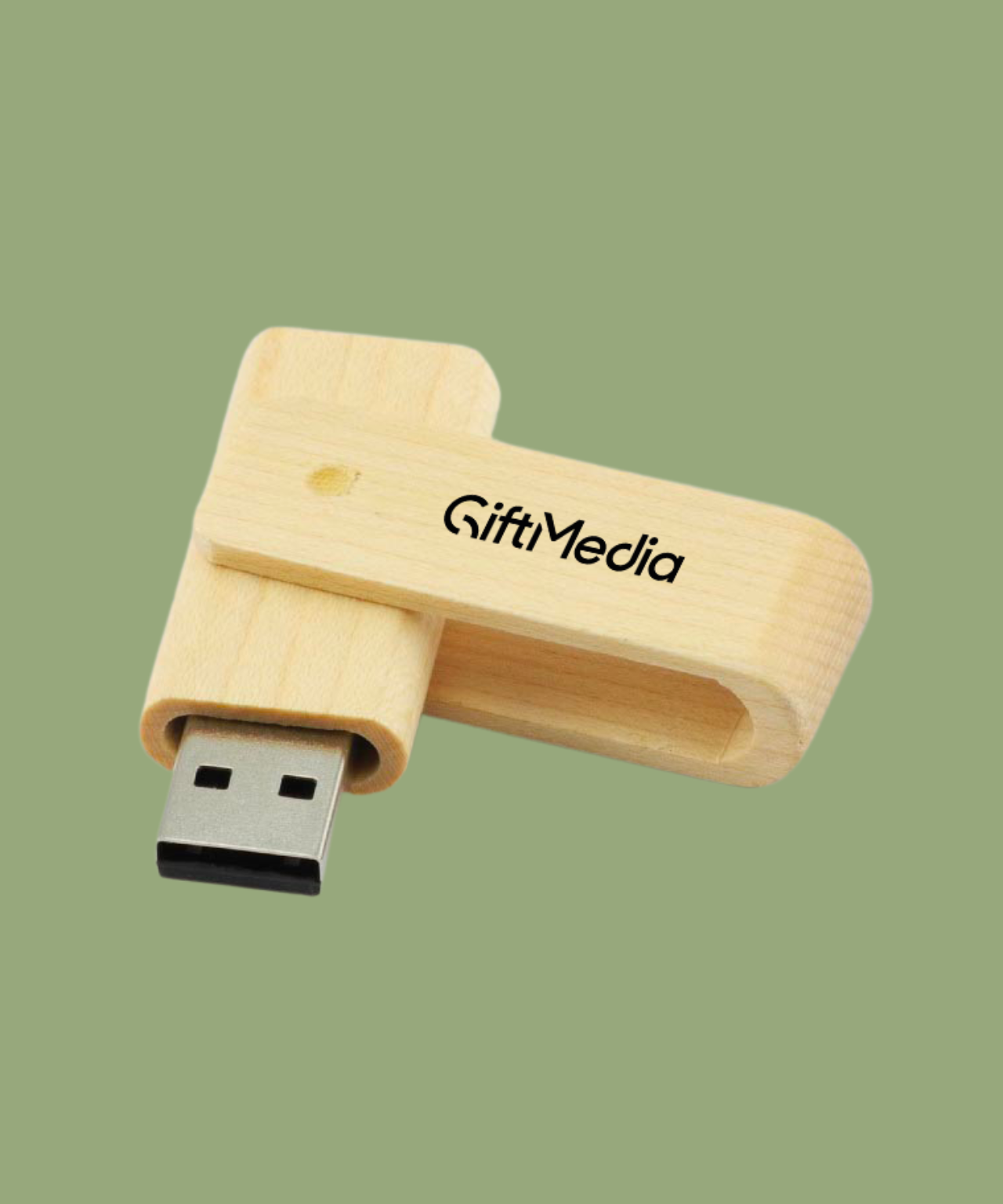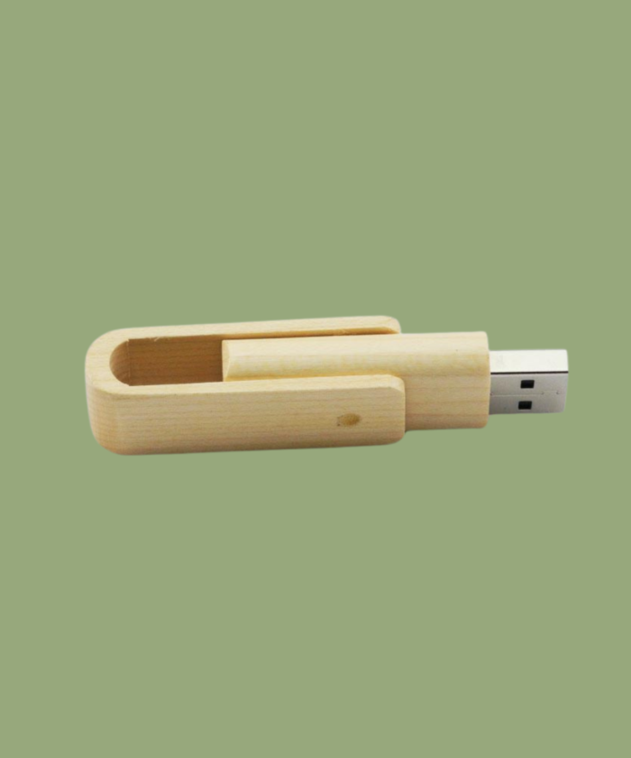 Cette clé USB en bambou est conçue pour les entreprises et marques qui souhaitent allier communication et engagement. Fabriquée en bambou naturel, matériau renouvelable et biodégradable, elle dispose d’un mécanisme pivotant en métal qui permet une utilisation intuitive et sans capuchon.