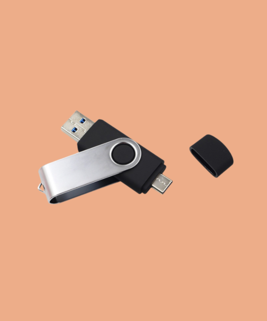 La Twist OTG est une clé USB hybride pensée pour une connectivité universelle, entre ordinateurs, tablettes et smartphones.