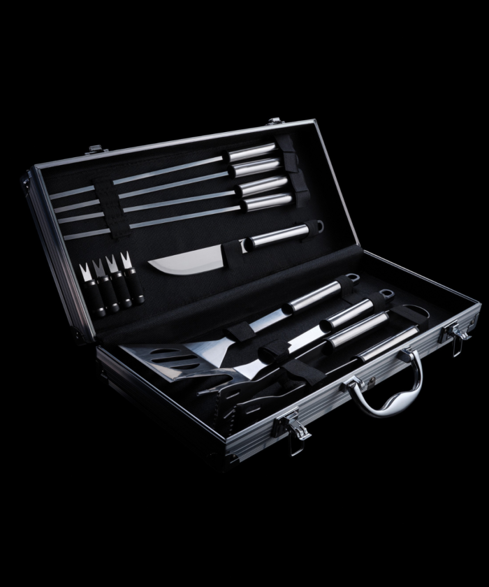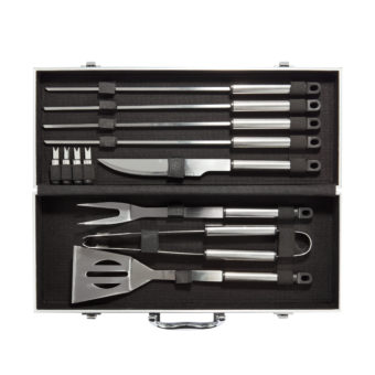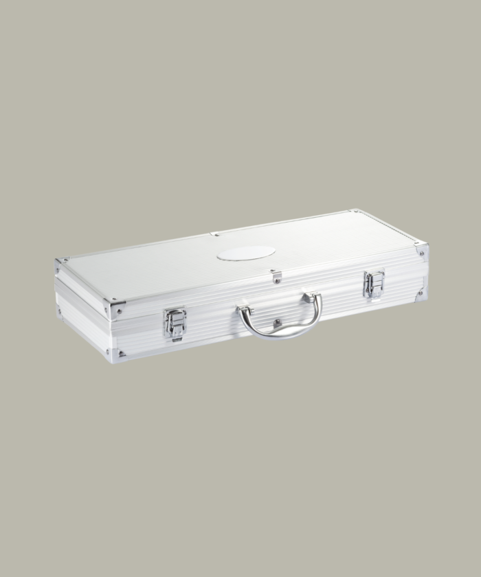 Coffret en aluminium composé d’un set de 12 accessoires pour barbecue