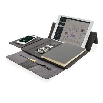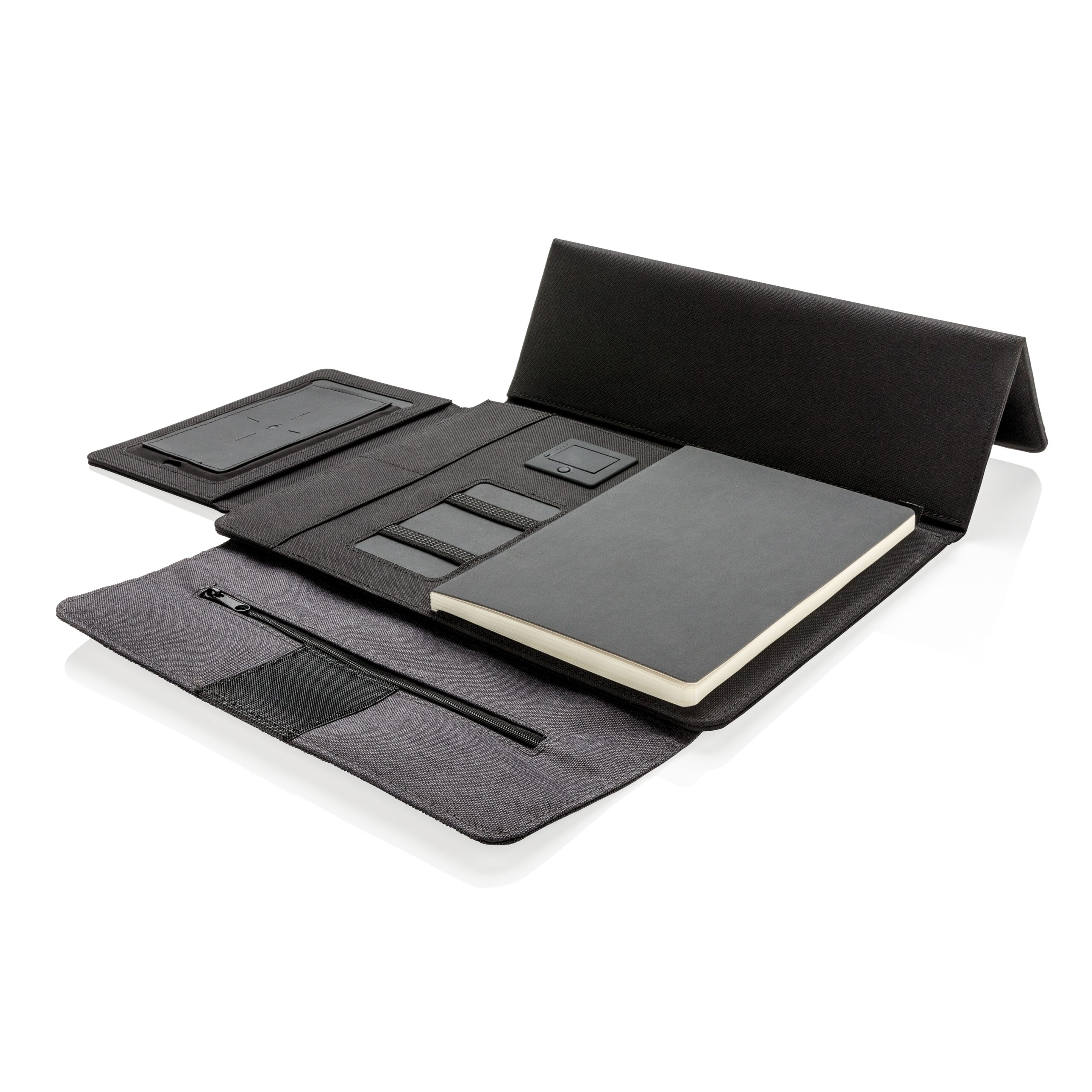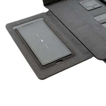 - Conférencier Kyoto. Fonction support tablette. Comprend une batterie externe sans fil de 4000 mAh. Compatible avec tous les appareils supportant la recharge sans fil (Qi) comme Android dernière génération, iPhone 8 et plus. Entrée: 5.0V / 1.0A. Sortie: 5.0V / 2.1A. Sortie sans fil: 5W. Polyester. Livré avec un cahier amovible de 128 pages de couleur crème lignées de 80 g/m2. Modèle déposé®
