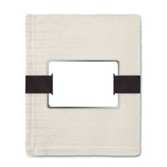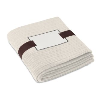Couverture souple en polaire de 240 gr/m² enveloppée dans un ruban et carte imprimable