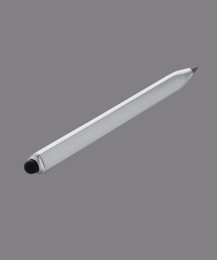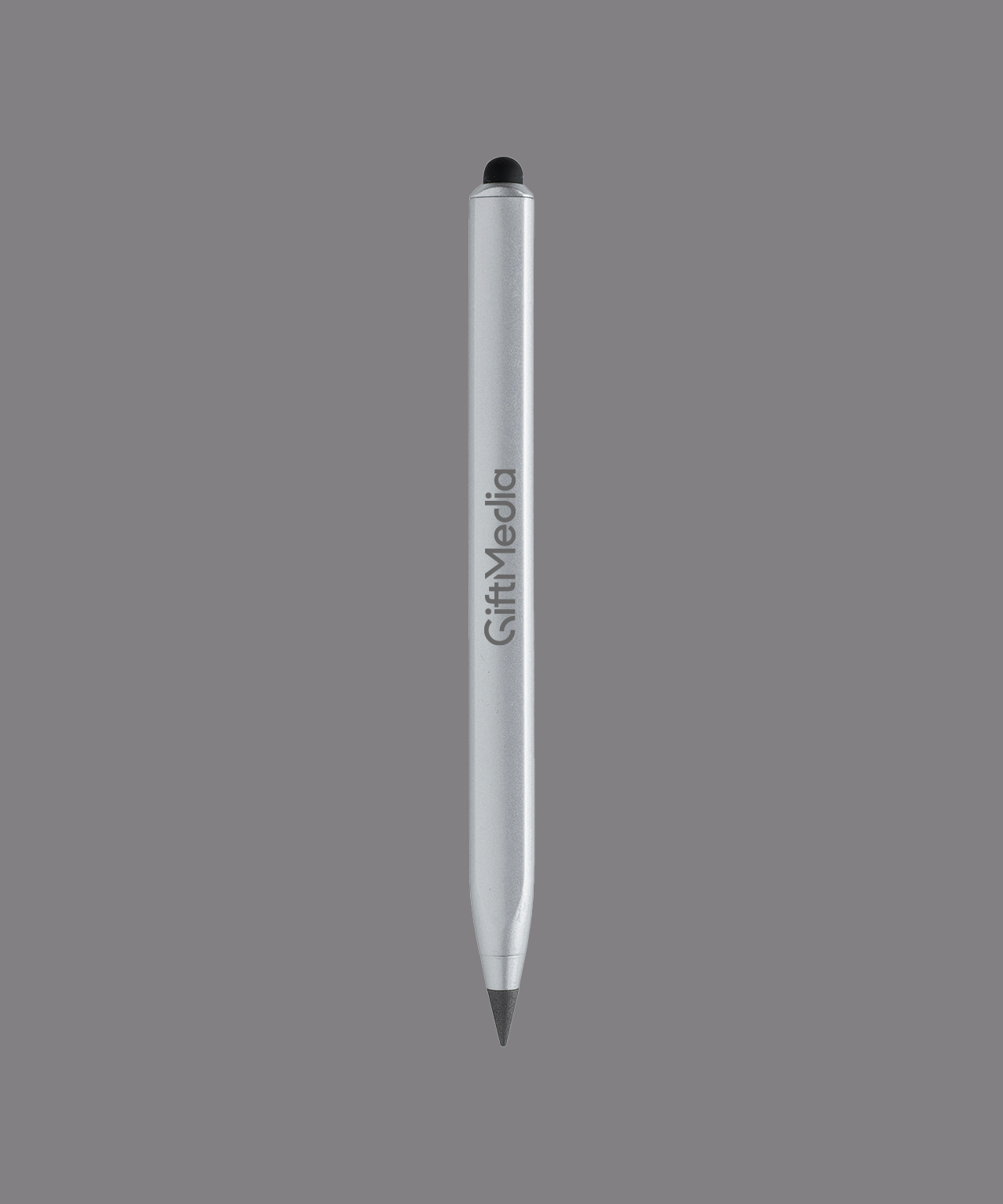- Stylo moderne en aluminium recyclé certifié RCS. Contenu recyclé total : 40% sur la base du poids total de l'article. La certification RCS garantit une chaîne d'approvisionnement entièrement certifiée pour les matériaux recyclés. Corps en forme de triangle avec un côté en cm et un côté en Inches. Les crayons de bois traditionnels n'écrivent que jusqu'à environ 200 mètres, mais ce crayon infini a une longueur d'écriture allant jusqu'à environ 20000 mètres grâce à une pointe en graphite qui produit une ligne propre qui peut être effacé avec une gomme. Avec une pointe tactile pour utiliser son téléphone. Emballé dans un emballage FSC® mix.