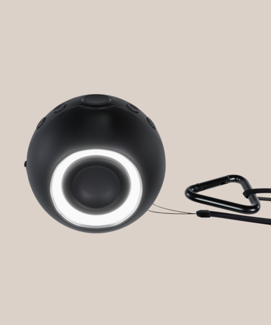 L'enceinte est fournie avec un mousqueton idéal pour une utilisation en déplacement.