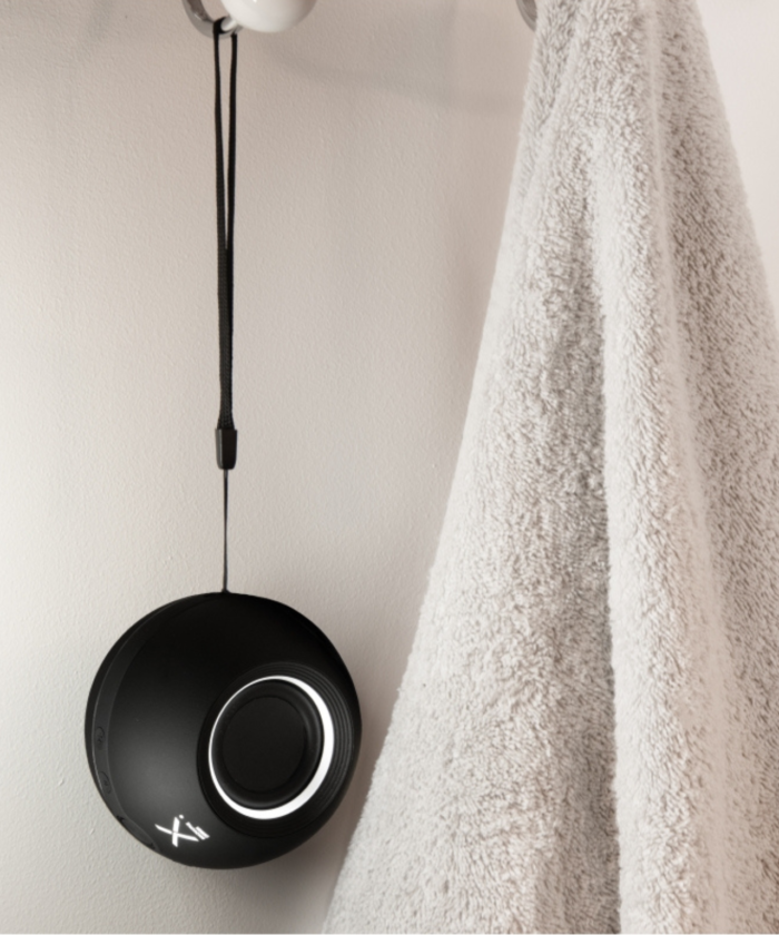 Profitez d’une radio FM intégrée, du couplage de deux haut-parleurs pour une sonorité plus immersive et d’une grande mobilité grâce au mousqueton fourni