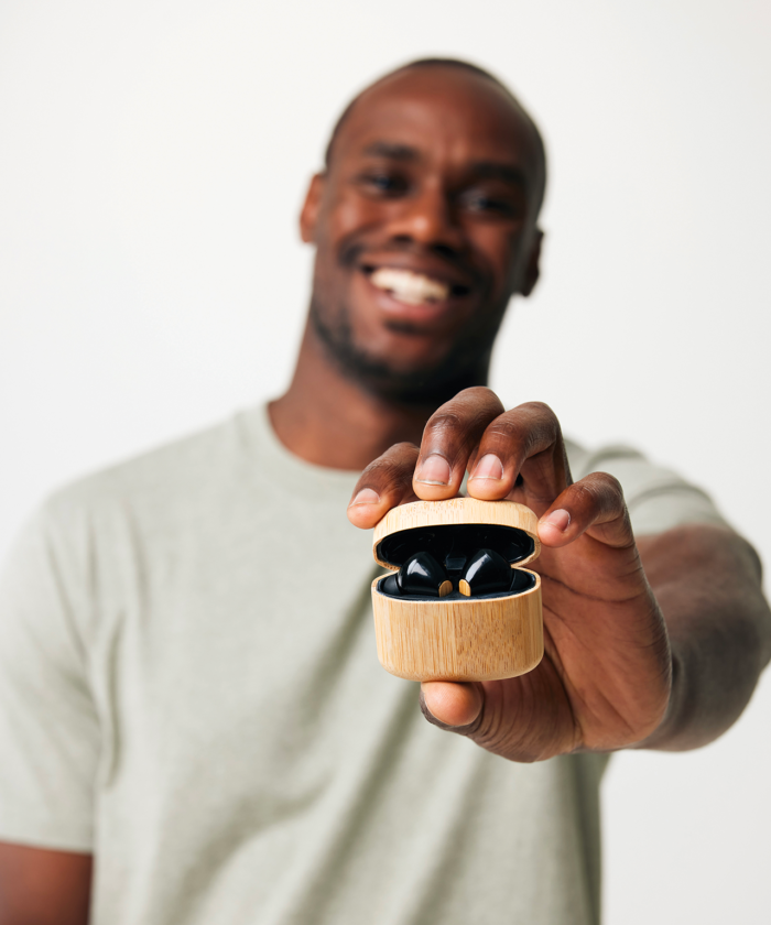Trois tailles d’embouts en silicone, un micro intégré, et un étui de charge en matériaux recyclés pour une utilisation à la fois pratique et responsable
