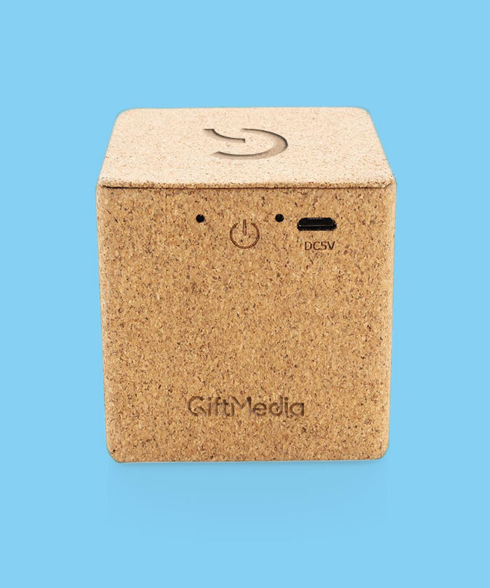 - Haut-parleur sans fil 3W en liège naturel. Batterie 500 mAh pour une autonomie de 4 heures et un temps de charge de 2 heures. BT 5.0 pour une distance de connexion jusqu'à 10 mètres. Sans PVC.