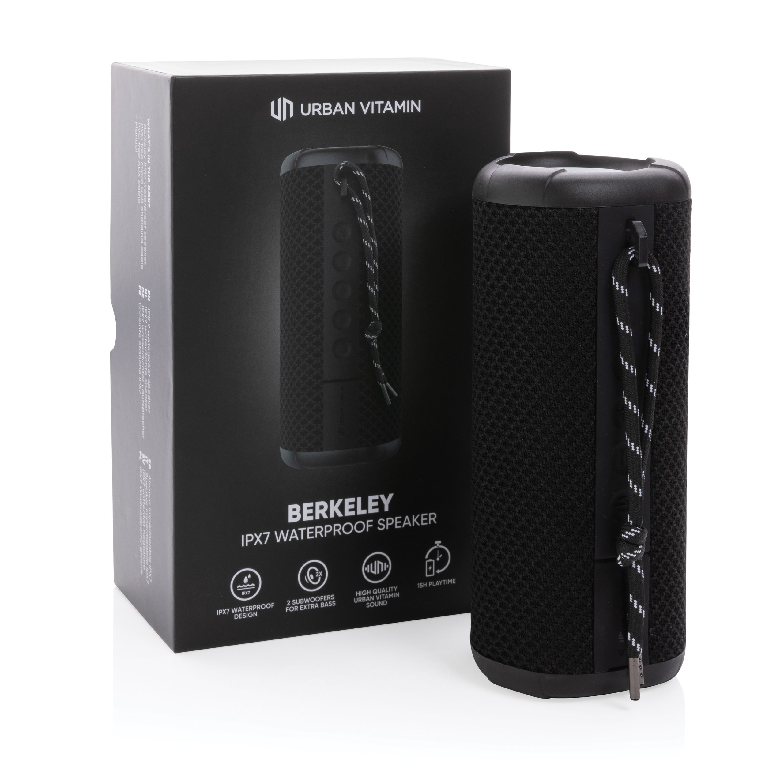 - Enceinte étanche IPX7 jusqu'à 1m de profondeur pendant 30 min, avec 2 caissons de basses aux extrémités et avec une autonomie de 15 heures. Le tissu durable et le boîtier robuste protégera celle-ci des petits impacts. Microphone et une fonction pour répondre aux appels inclus. Les articles Urban Vitamin sont fabriqués sans PVC et emballés dans des emballages à faible teneur en plastique