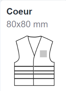 Impression couleur, opposé cœur, format max 80x80mm Impression couleur, sur le dos, format max 235x200mm Impression couleur, sur le cœur, format max 80x80mm