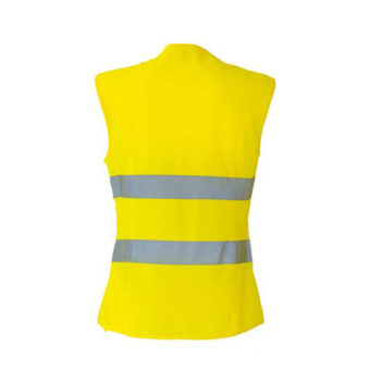 - Coupe féminine et ajustée. Disponible en trois tailles pour femme. Certifié selon la norme EN ISO 20471 Norme Oeko-Tex® 100. Deux bandes réfléchissantes de 5 cm de large autour du corps. Possibilité supplémentaire d'ajuster la taille grâce à deux fermetures velcro. 100% polyester