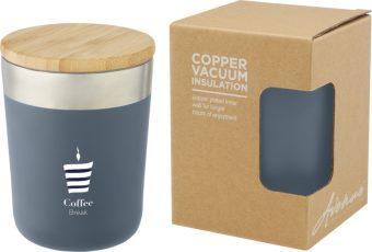 Gobelet Lagan de 300 ml en acier inoxydable à isolation sous vide, en cuivre, avec couvercle en bambou