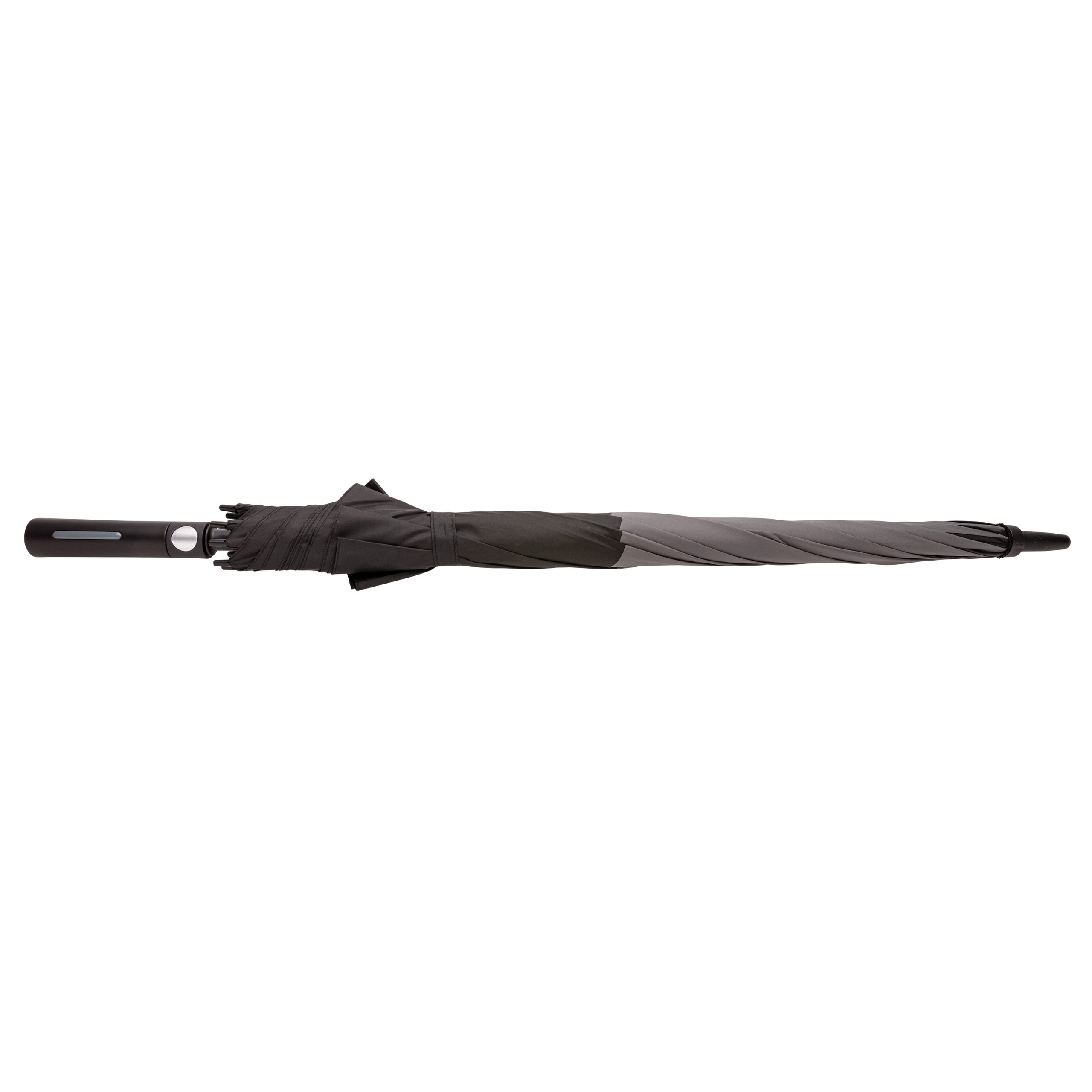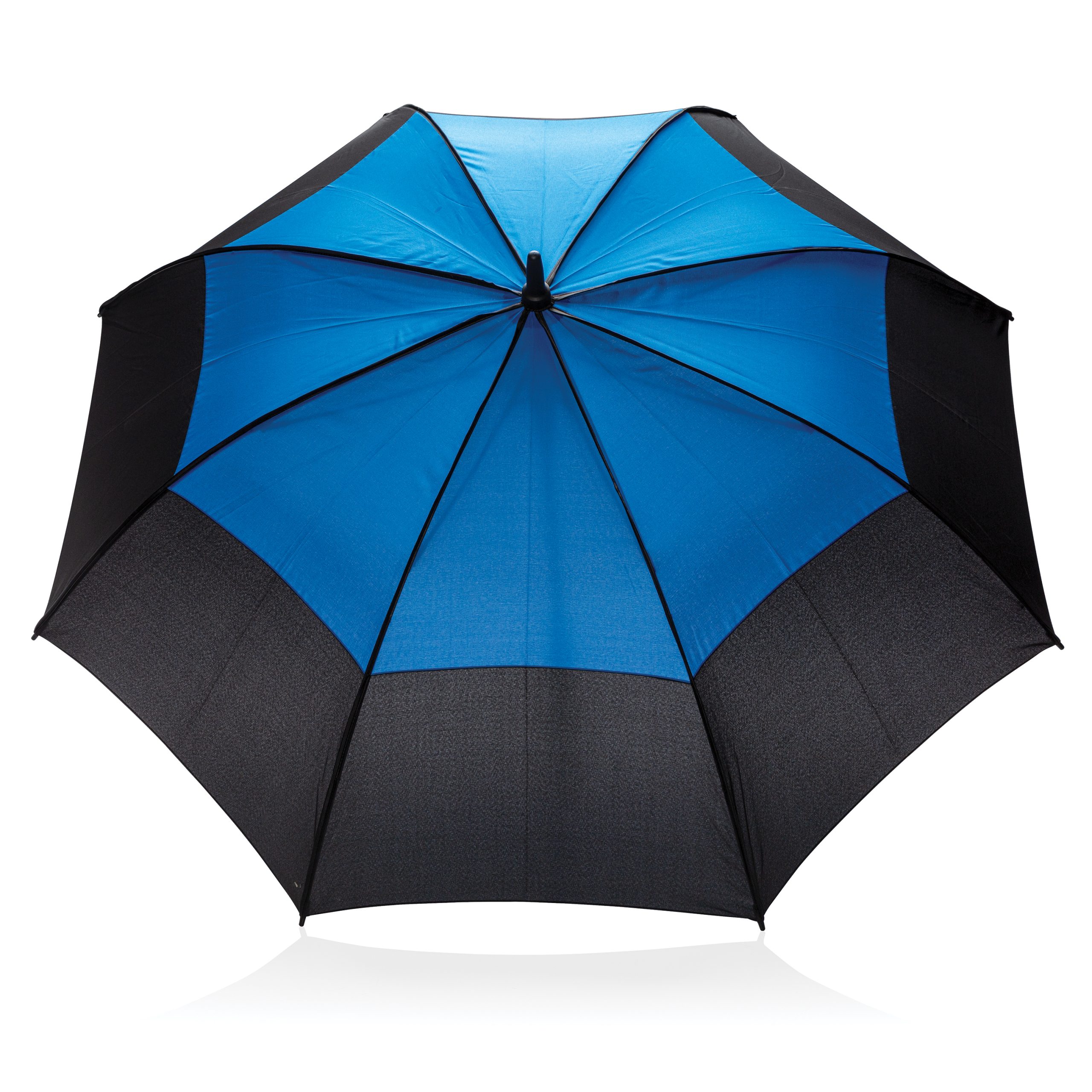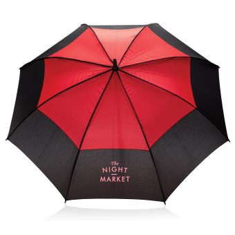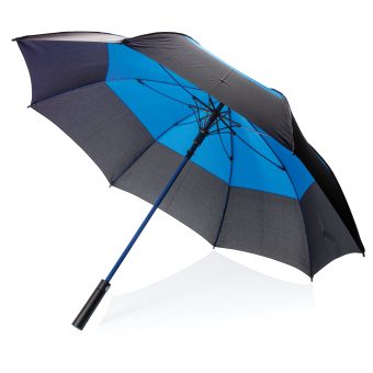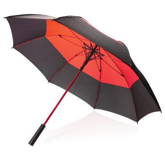 Parapluie tempête 27'' en tissu pongé 190T avec système d'ouverture automatique. Système coupe-vent. Avec poignée droite et baleines en fibre de verre