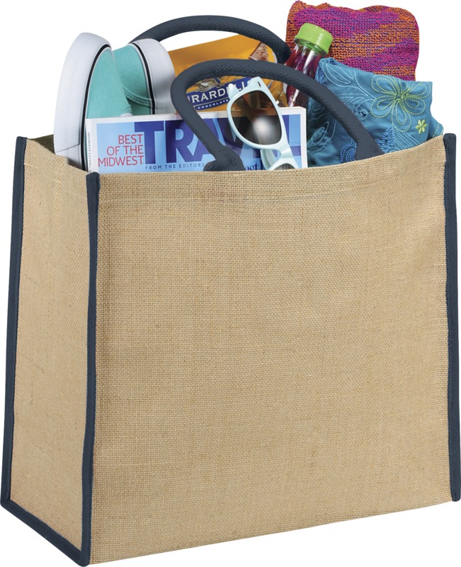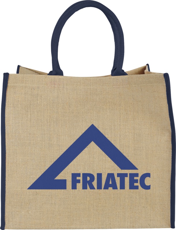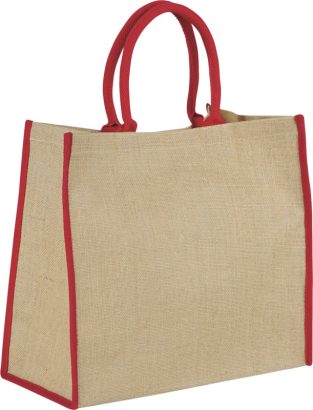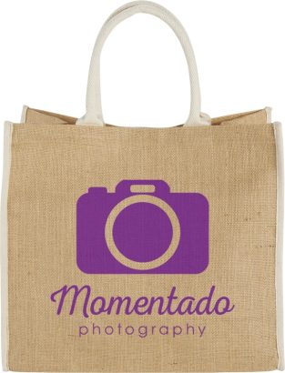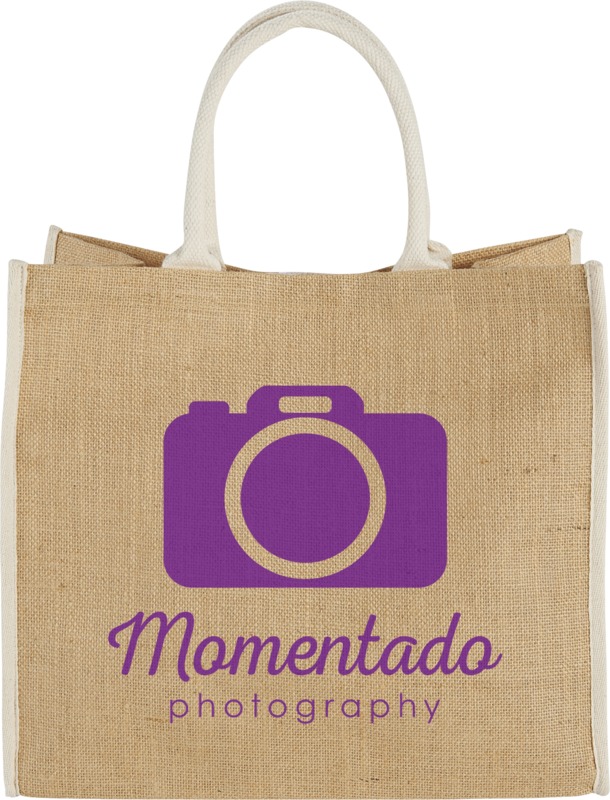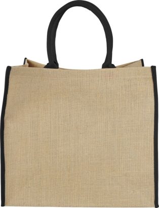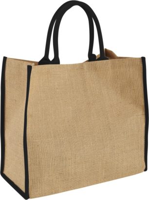 Grand sac shopping en jute, compartiment principal ouvert avec système de fermeture velcro. Anses de 17 cm de hauteur
