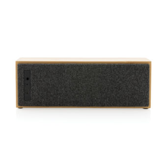 Haut-parleur de luxe de 10W avec un son clair et des basses puissantes. Le boîtier extérieur est fabriqué en bambou certifié FSC à 100 %. Les composants en plastique sont fabriqués à partir d'ABS recyclé certifié RCS (Recycled Claim Standard). Contenu recyclé total : 23 % sur la base du poids total de l'article. La certification RCS garantit une chaîne d'approvisionnement entièrement certifiée pour les matériaux recyclés. L'enceinte est équipée de la technologie BT 5.1 pour un fonctionnement facile et fluide jusqu'à 10 mètres et une faible consommation d'énergie. La batterie de 2000 mAh permet une durée de lecture jusqu'à 6 heures et peut être entièrement rechargée en 3 heures. Avec fonction pick up et micro pour répondre aux appels (vidéo). Emballé dans une boîte en kraft FSC mix. Câble de chargement en TPE recyclé certifié RCS inclus.