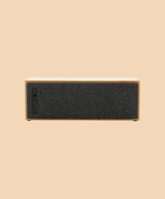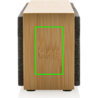 - Haut-parleur de luxe de 10W avec un son clair et des basses puissantes. Le boîtier extérieur est fabriqué en bambou certifié FSC à 100 %. Les composants en plastique sont fabriqués à partir d'ABS recyclé certifié RCS (Recycled Claim Standard). Contenu recyclé total : 23 % sur la base du poids total de l'article. La certification RCS garantit une chaîne d'approvisionnement entièrement certifiée pour les matériaux recyclés. L'enceinte est équipée de la technologie BT 5.1 pour un fonctionnement facile et fluide jusqu'à 10 mètres et une faible consommation d'énergie. La batterie de 2000 mAh permet une durée de lecture jusqu'à 6 heures et peut être entièrement rechargée en 3 heures. Avec fonction pick up et micro pour répondre aux appels (vidéo). Emballé dans une boîte en kraft FSC mix. Câble de chargement en TPE recyclé certifié RCS inclus.