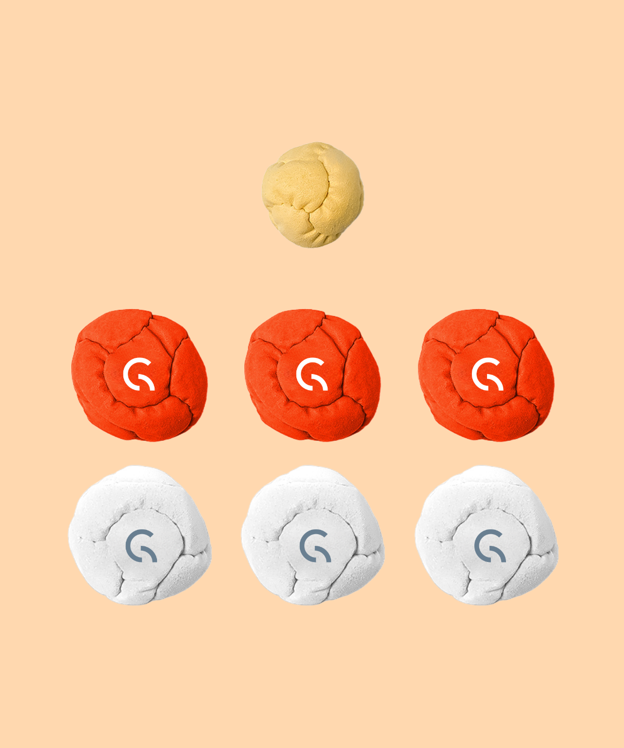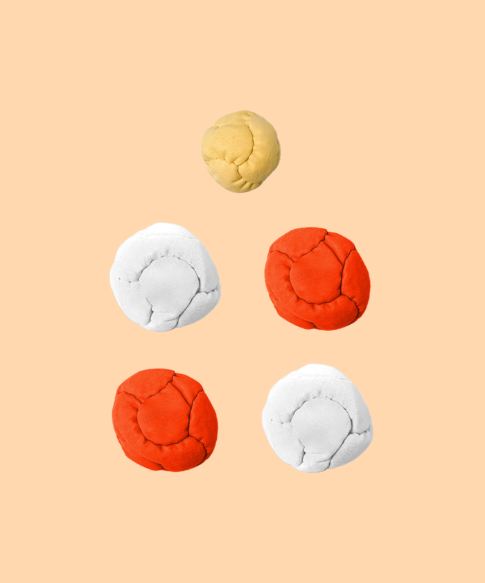 - Set pour jouer à la pétanque (Tshaka Petank) composé de 6 balles en tissu et d’un cochonnet.