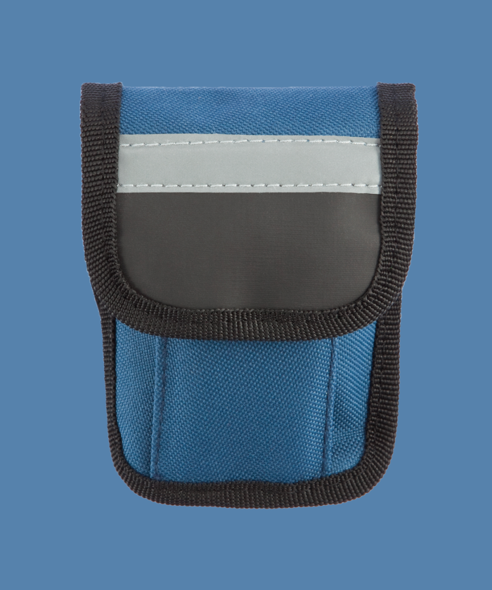 Le kit est livré dans une pochette bleue avec bande réfléchissante et comprend tout le nécessaire pour les réparations en route : démonte-pneus, rustines, colle, grattoir