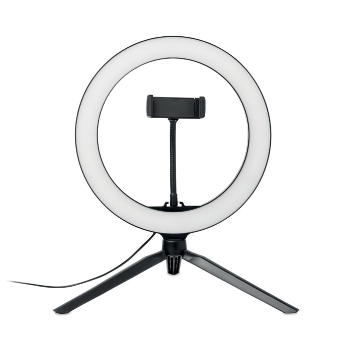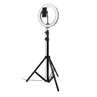 - Lampe annulaire LED de 26 cm avec support pour trépied et support pour téléphone. Si vous êtes un créateur de contenu ou si vous faites régulièrement des streams ou des diffusions, avoir un bon éclairage pour votre public est une nécessité absolue. La lumière circulaire projette un motif lumineux uniforme sur votre visage ou votre sujet, sans aucune ombre dure. Cette lumière circulaire est donc idéale pour les Tik-tok®, les live-streamings, les diffusions et les photos Instagram. Un obturateur filaire est inclus pour une parfaite opportunité de selfie. La lampe comporte 120 LED blanc chaud avec un réglage de 10 niveaux de luminosité pour une exposition lumineuse parfaite. Réglez le support du trépied à la hauteur préférée, ajoutez votre smartphone au support et vous êtes prêt à aller en direct