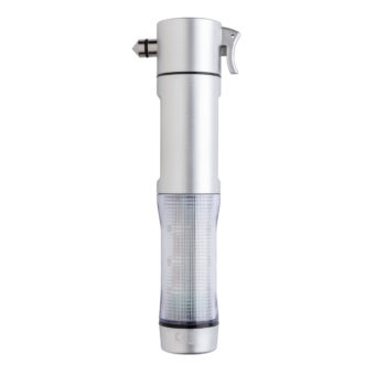 - Lampe torche de secours pour voiture, corps argenté en ABS, 1 LED blanche et 9 lumières rouges clignotantes sur le côté, coupe-ceinture, brise-vitre, socle aimanté.