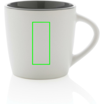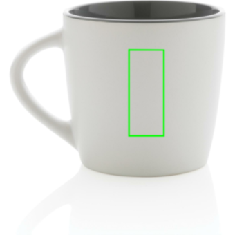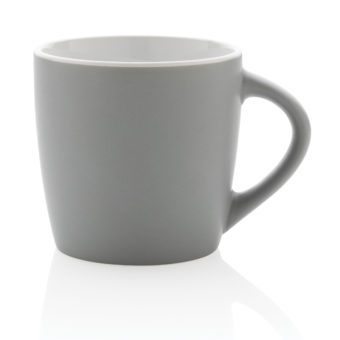 Mug 300ml en céramique design avec une finition extérieure mate et intérieur coloré. Le mug passe au lave-vaisselle et a été testé conformément à la norme EN12875-1 (au moins 125 cycles de lavage pour les types de marquage). Emballé dans une boîte cadeau kraft.
