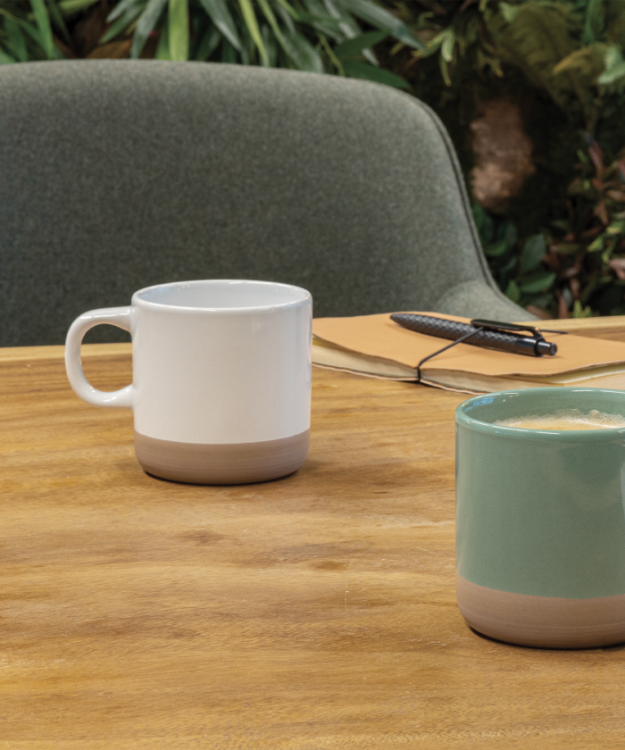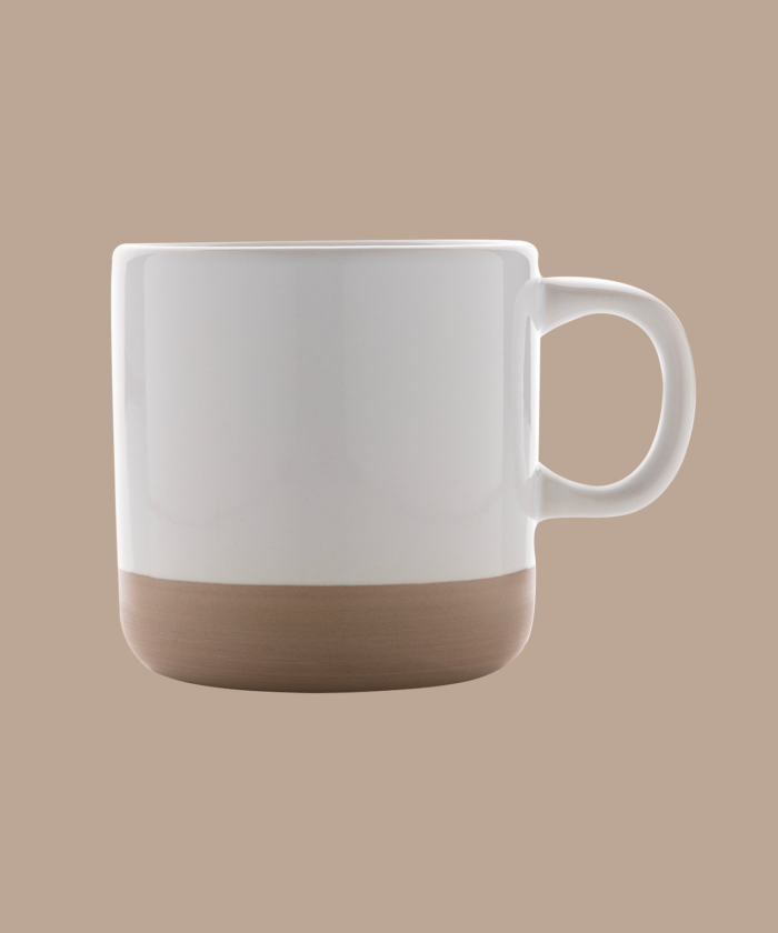 - Mug 360 ml en céramique au corps émaillé et base cuite naturelle. En raison des variations naturelles de l'argile utilisée pour la construction, chaque mug est unique. Livré dans une boîte cadeau kraft.