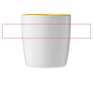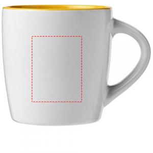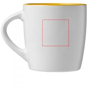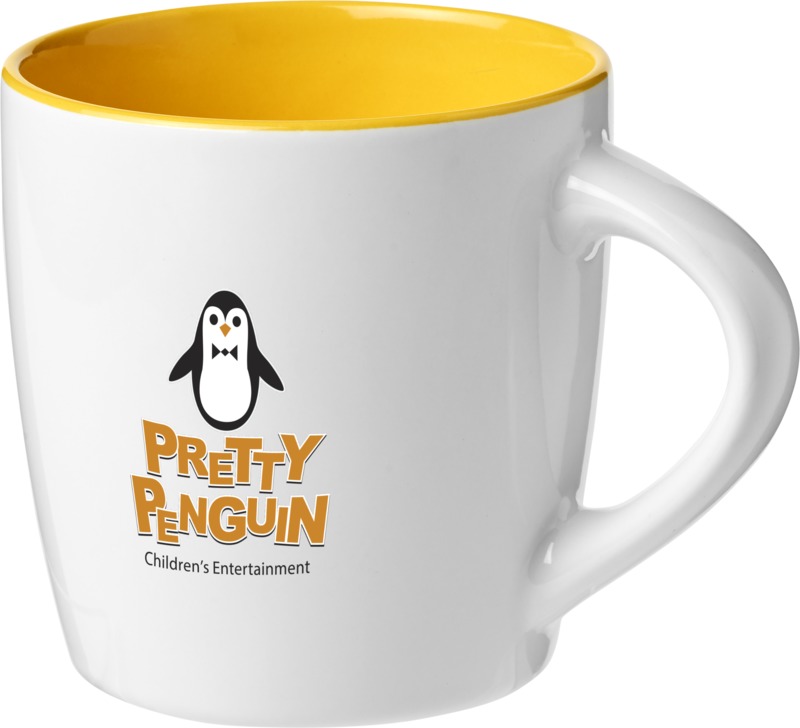 Mug 340 ml avec un finition extérieure brillante et une pointe de couleur intérieure. Lavable au lave-vaisselle, en conformité avec la norme EN 12875-1 (au moins 125 cycles de lavage) pour toutes les techniques de marquage. Livré dans une boîte en carton blanc