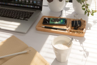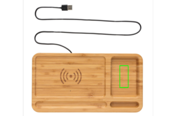 Organiseur de bureau en bambou avec chargeur 10W FSC®