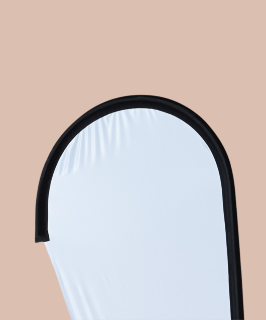 Une voile publicitaire en forme de goutte est un modèle original pour vous démarquer. La flamme personnalisée Leaf line est arrondie et permet de donner beaucoup d'impact aux marques et aux logos qui s'inscrivent dans une forme arrondie. L'oriflamme LEAF line est disponible en 3 formats et différentes matières. Finition unique (Fourreau de sangle élastique noire, bords ourlés sauf pour la maille markelon 120grs)