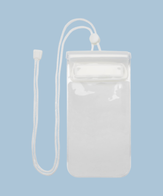 Pochette étanche pour téléphone portable de grande taille (L) avec certification IPX7, protégeant des dommages causés par l’eau. La lanière incluse permet un port autour du cou. Parfait pour les journées à la plage, les randonnées ou les activités nautiques. PVC