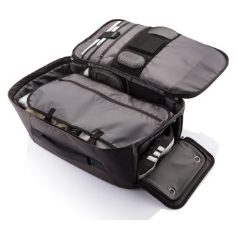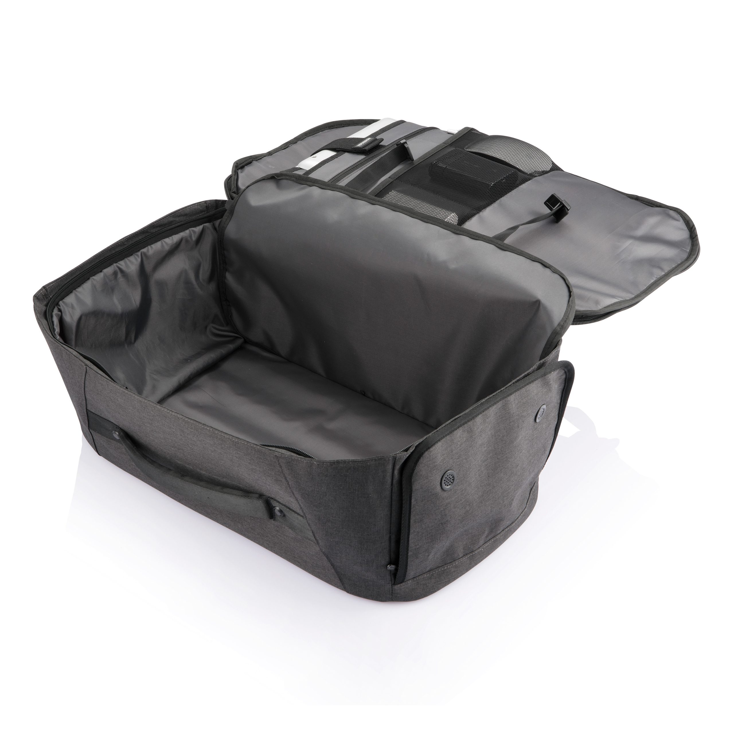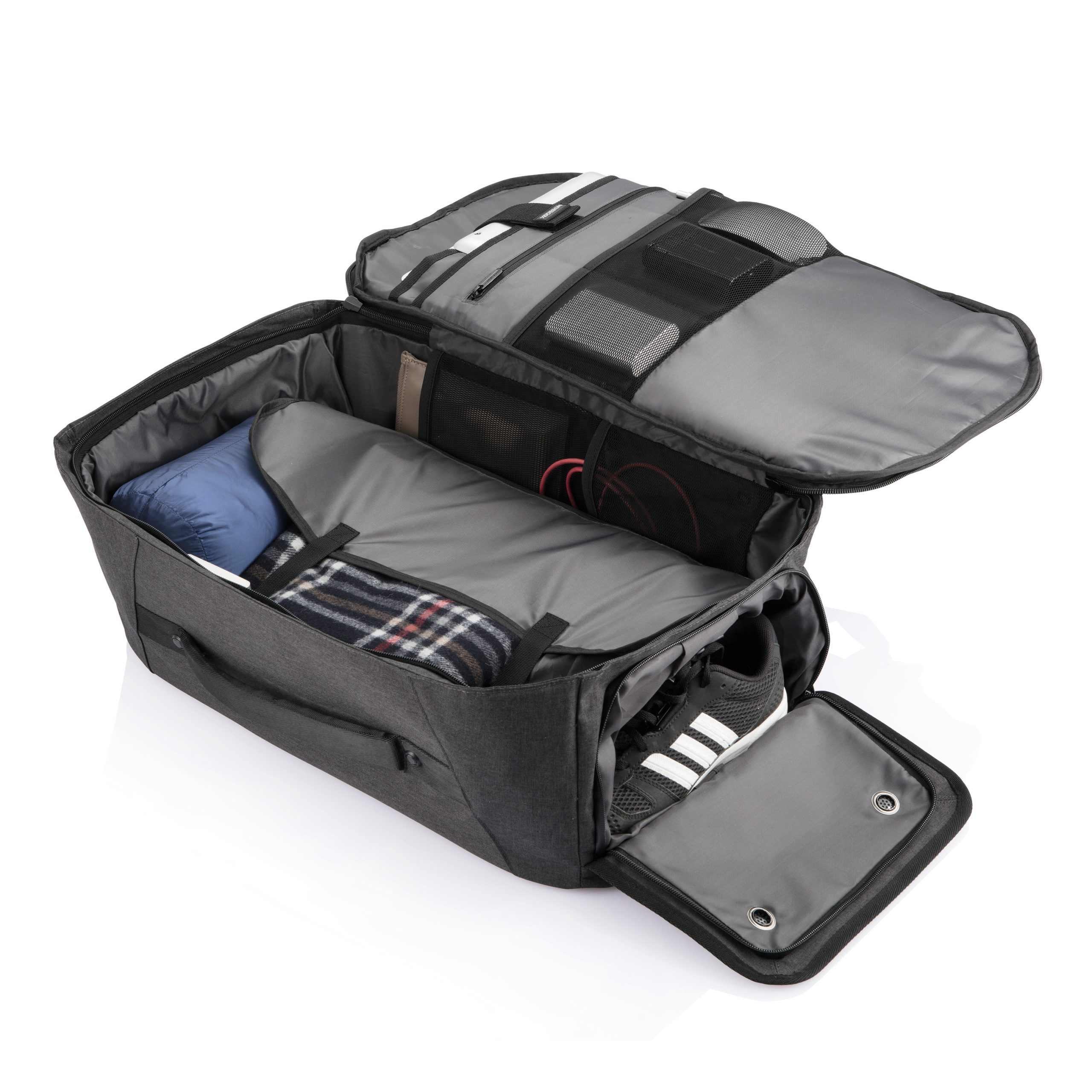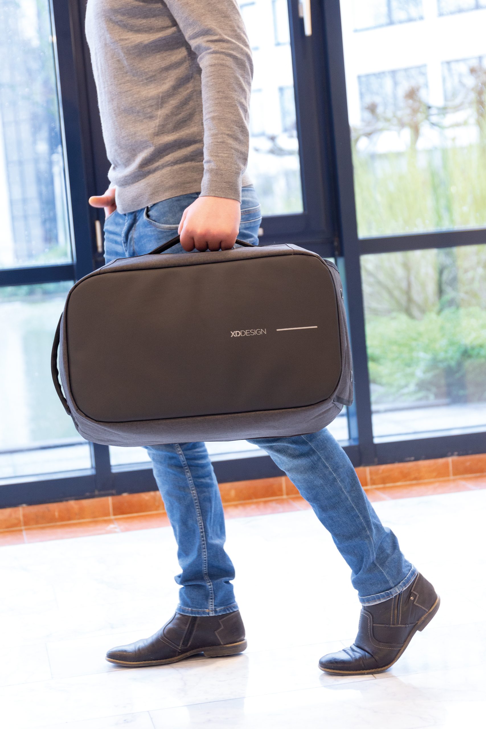 - Bobby Duffle est la solution la plus sûre et la plus durable pour les sacs de voyage antivol. Ce sac à dos est un sac de voyage de 30 litres approuvé pour les bagages de cabine. Le système polyvalent de sangles et de transport permet de passer facilement d'un sac à dos à un sac de sport. Il dispose d'un compartiment principal spacieux avec séparateurs intérieurs ainsi que d'un compartiment rembourré pour ordinateur 17". Les caractéristiques antivols emblématiques telles que : fermetures éclairs cachées et poches cachées anti-RFID, protection anti-lacérations et fermetures éclairs verrouillables, sont incluses. Equipé d'une poche imperméable pour ranger votre parapluie et d'un compartiment à chaussures sur le bas. Fabriqué à partir de matériaux rPET et du traceur AWARE™. L'utilisation de matériaux textiles recyclés authentiques et les déclarations d'impact sur la réduction de la consommation d'eau sont garanties, grâce à l'utilisation du traceur et de la blockchain AWARE. Modèle déposé