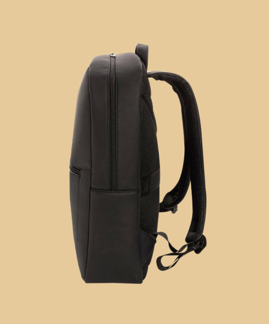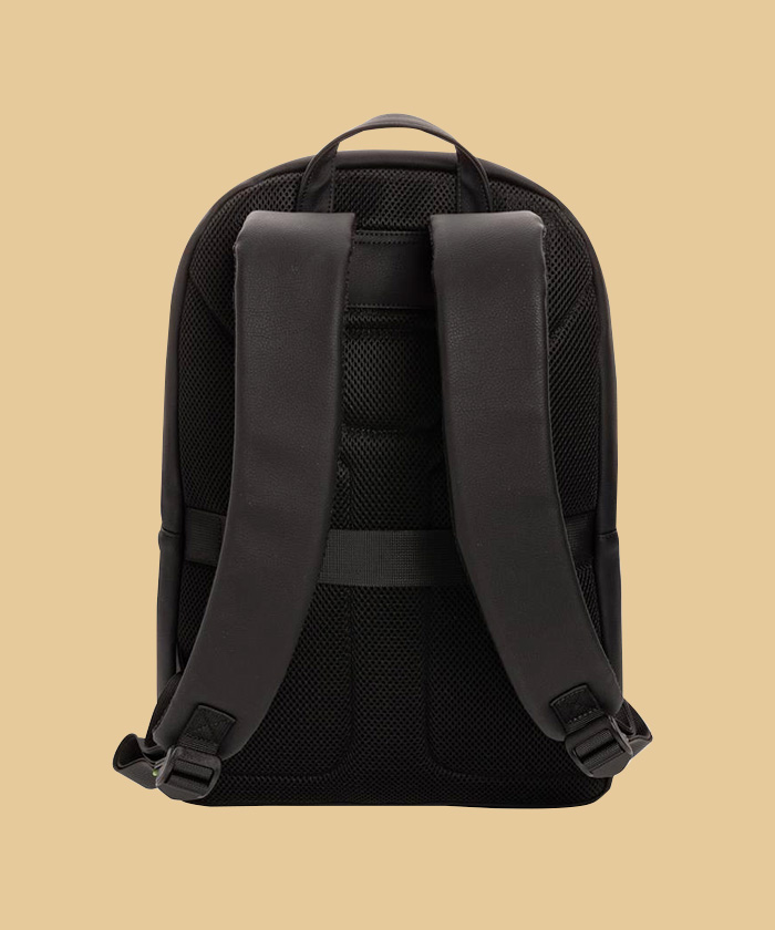 - Sac à dos en cuir végan. Fermeture zippée sur le dessus, poignée de transport sur le dessus, bretelles ajustables, poche extérieure et intérieure zippées, passant pour trolley au dos et compartiment pour ordinateur portable 15,6 pouces. Extérieur 100% PU, intérieur 100% polyester 210D. Sans PVC.