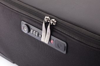 À l'intérieur, vous trouverez des compartiments séparés pour vos vêtements et appareils professionnels, ainsi qu'une pochette pour ordinateur portable à accès rapide qui s'ouvre à un angle de 30 degrés et qui peut accueillir un ordinateur portable de 17 pouces