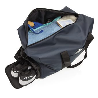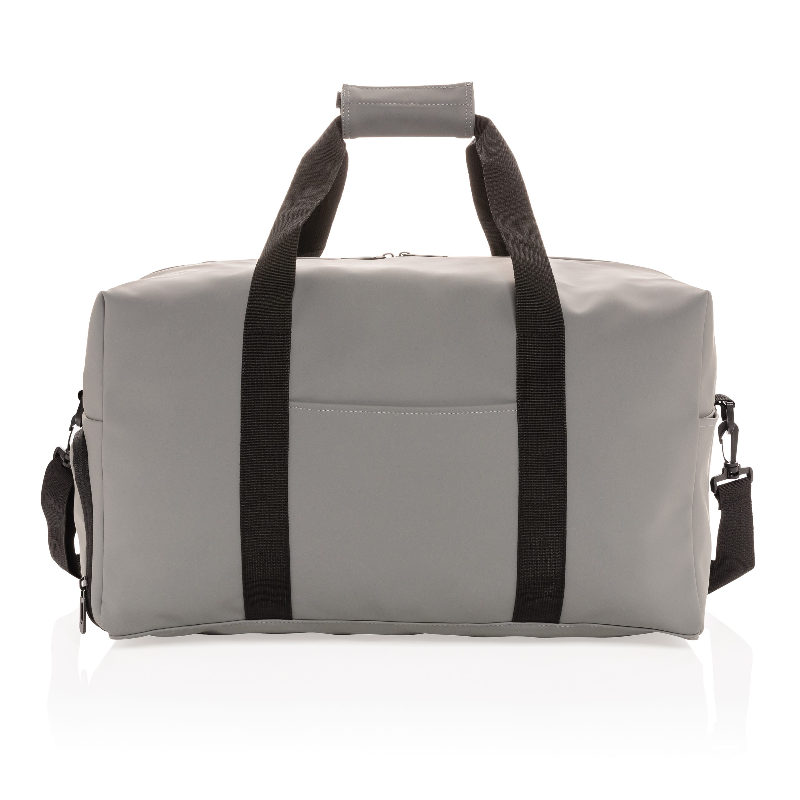 - Sac weekend en PU. Idéal pour un déplacement de quelques jours ou pour le sport. Design minimaliste. Poche sur le devant, poche intérieure et grand compartiment principal. Compartiment à chaussures pratique sur le côté. Peut être porté à l'épaule ou en travers avec la bandoulière ajustable ou à la main avec les poignées robustes. Extérieur 100% PU. Intérieur 100% polyester 210D. Sans PVC