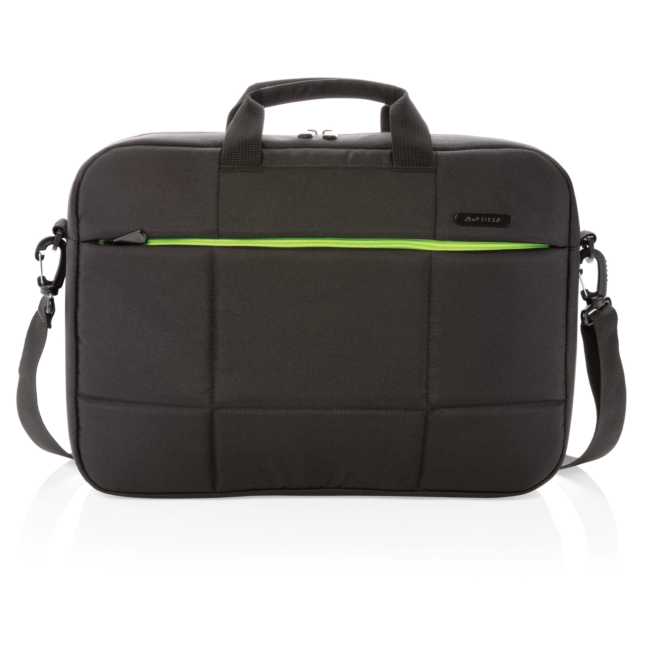 - Sacoche ordinateur en rPET 600D, doublure en rPET 210D, avec un compartiment pour ordinateur 15,6", poche frontale zippée pour ranger vos affaires de la vie quotidienne. Modèle déposé®