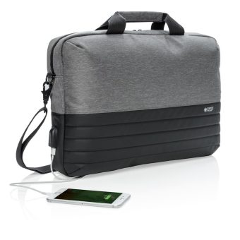 - Sacoche à ordinateur portable 15.6” au style unique qui permet le rangement de votre ordinateur portable ou de votre tablette. Avec des poches pour ranger tous vos gadgets high-tech et vos accessoires personnels. Poche avec protection anti-RFID pour votre portefeuille et votre passeport. Branchez aisément votre powerbank (non inclus) sur le port de charge USB intégré et chargez votre téléphone ou tablette pendant vos déplacements. Au dos, poche zippée et passant à trolley.
