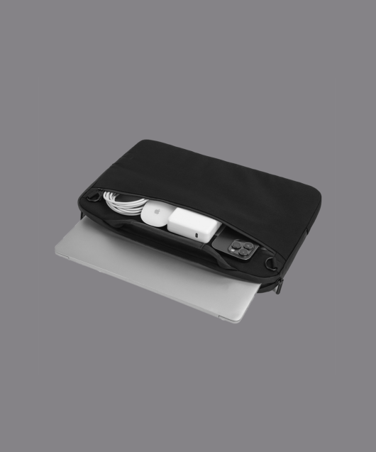 Conçue dans un souci de durabilité, la sacoche pour ordinateur portable 14" adopte une attitude écoconsciente avec l'utilisation de matériaux en tissu recyclé authentique